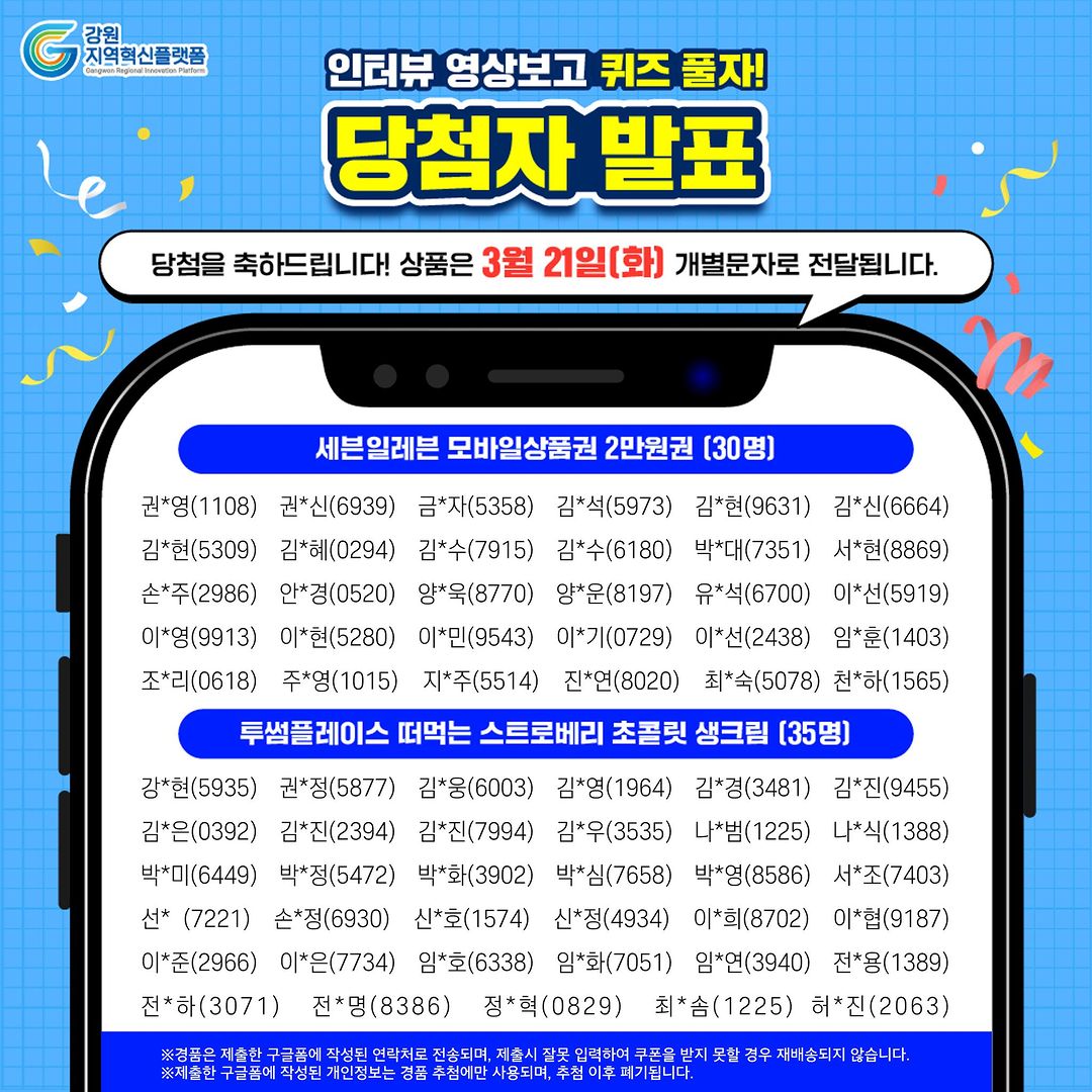 ※경품은 3월 21일(화) 개별 문자로 전달됩니다.